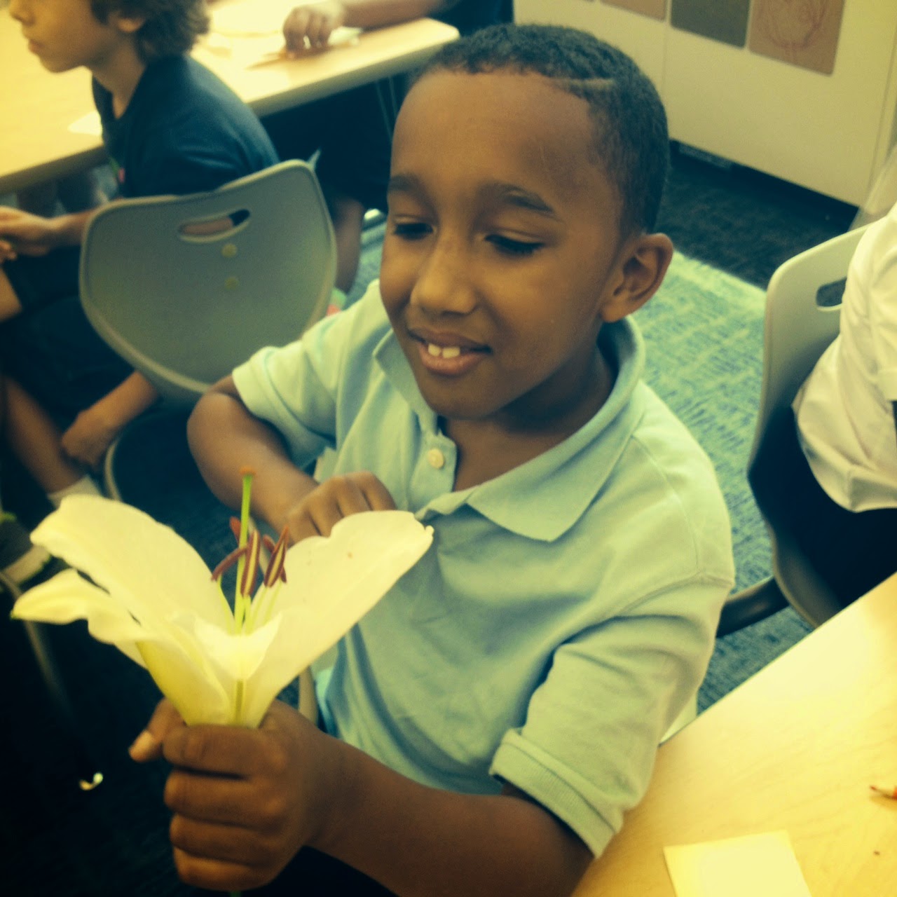Pulling apart Lilies and exploring the texture, smell and look of the insides!